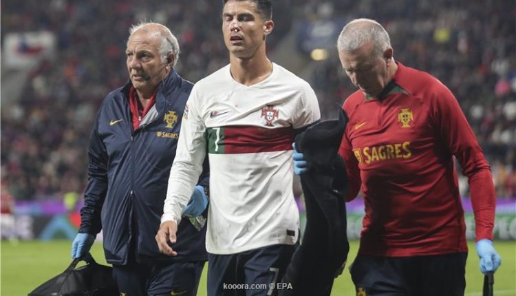 تعرض البرتغالي كريستيانو رونالدو، نجم وقائد منتخب البرتغال، لإصابة قوية في الوجه خلال مباراة التشيك.